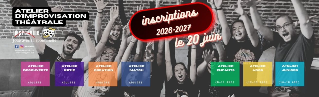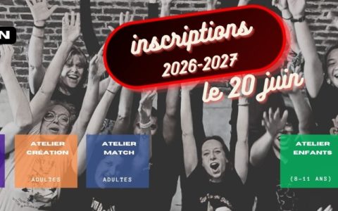 – Vous avez déjà fait de l’impro. Vous pouvez faire un cours d’essai sur l’atelier Match/ l’atelier Brugnons Givrés/ Atelier Les funambules. Vous pouvez payer un atelier et suite au cours d’essai changer d’atelier s’il reste de la place.